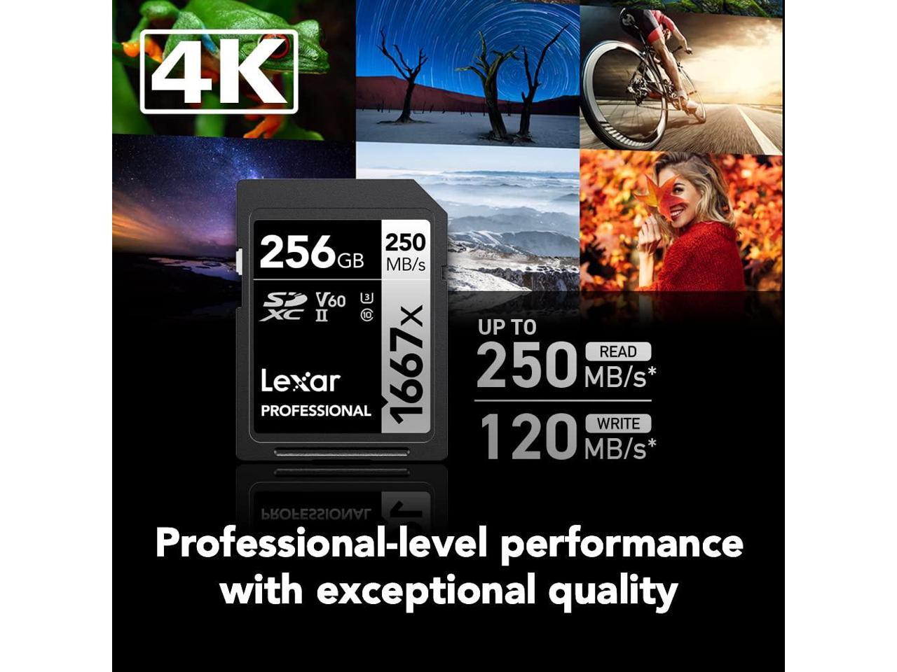 Lexar Professional 1667x 256GB (2-Pack) SDXC UHS-II Cards, Up to 250MB/s Read, for Professional Photographer, Videographer, Enthusiast (LSD1667256G-B2NNU)
