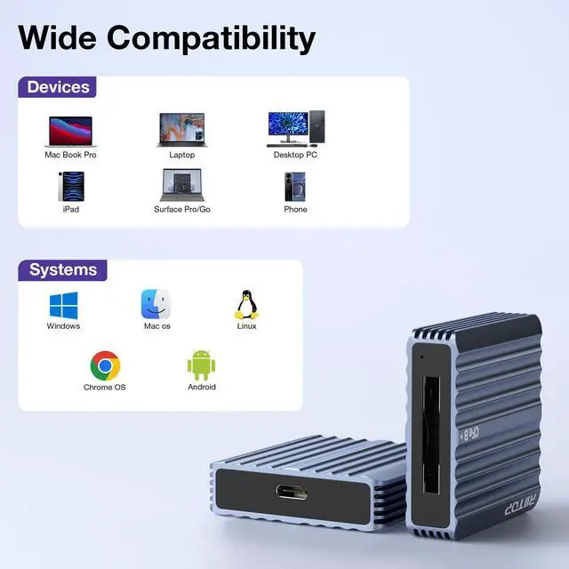 3. In order to reach 10Gbps high speed,the USB-A/USB-C port of your devices must reach the speed of USB 3.2 GEN2. Note:The final data speed is decided by the card and USB slot Type.