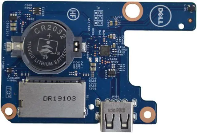 Dell Inspiron 15 5584 USB / SD Card Reader IO Circuit Board (part number PYF3X) is a replacement component designed for the Dell Inspiron 15 5584 laptop. This circuit board features integrated USB ports and an SD card reader, providing essential connectivity options for your device. The USB ports allow for easy connection of peripherals such as mice, keyboards, and external storage devices, while the SD card reader enables quick access to data from memory cards, making it ideal for transferring photos, videos, and other files.
