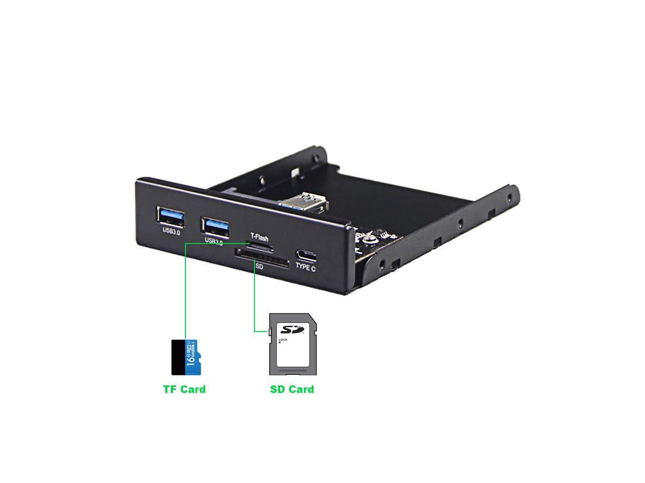USB 3.0 SD/Micro SD/TF 3.5" Internal Card Reader w/ USB 3.1 Gen 1 Type C + 2 x USB 3.0 Port Hub Front Panel
