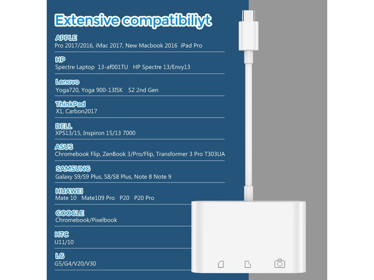 - Browsing Photos Instantly- Compatible with SD, SDHC, SDXC, MicroSD, MicroSDHC, Micro SDXC cards. Browse and view photos instantly on your USB-C smartphones/laptops. View footage from your trail cameras, wildlife monitors, home security cameras, car monitors and share photos/albums directly with your friends.
