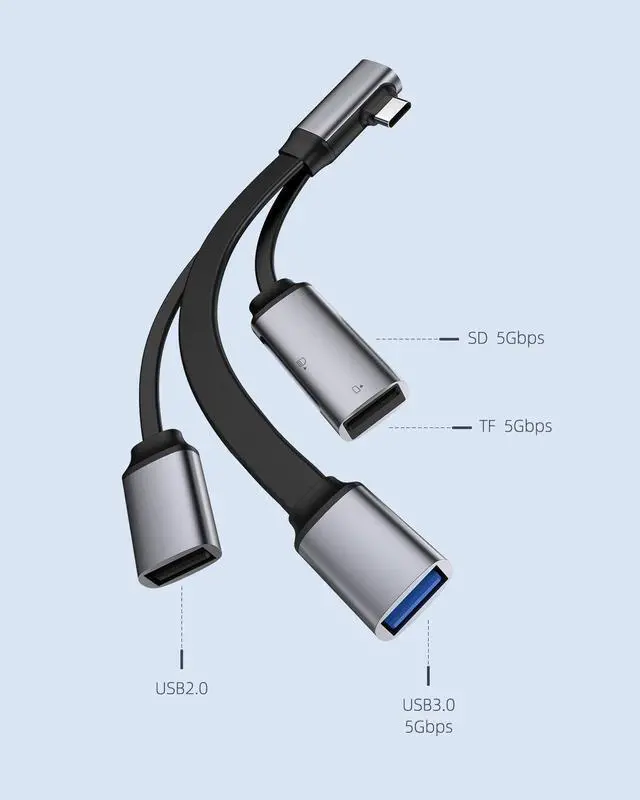 Hagibis USB-C Portable Extension Cable with 1 USB 3.0, 1 USB 2.0 port and SD/Micro SD card reader for all laotops, phones and tablets with USB-C ports.