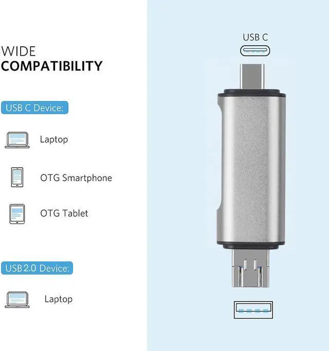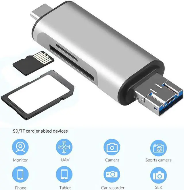 1.Portable Multifunctional 3 in 1 -A / Micro / Type-C Port TF / SD Card Reader with OTG