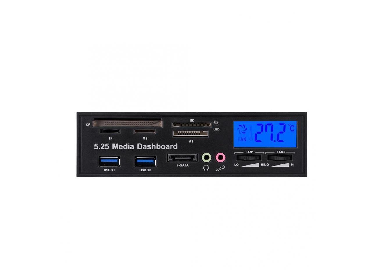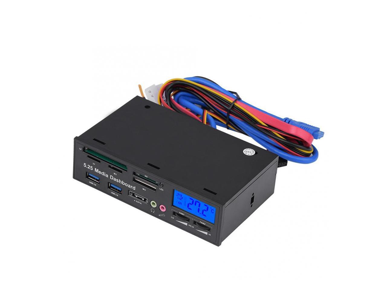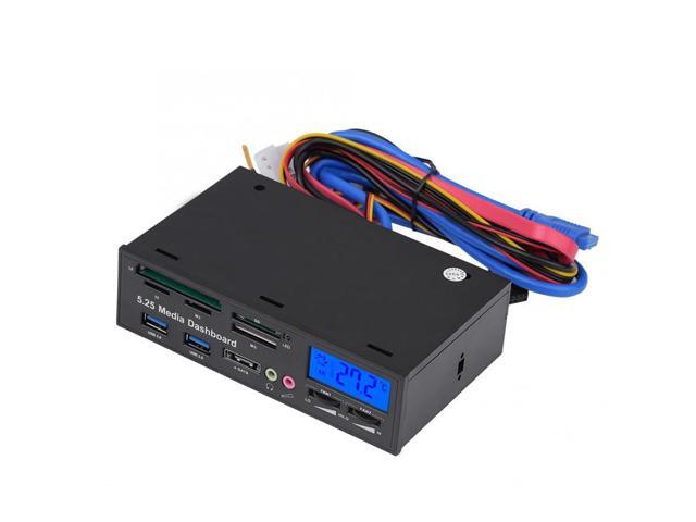 5.25" Multifuntion Media Dashboard Front Panel 2 USB 3.0 Hub Card Reader with LCD Display Suitable for Desktop Computer