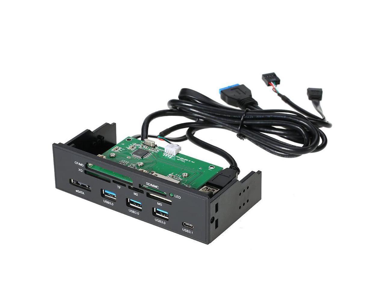 5.25" Internal Desktop Front Panel Card Reader Type-C USB 3.1 USB 3.0 Hub Support CF MD XD MMC SD TF M2 MS eSATA