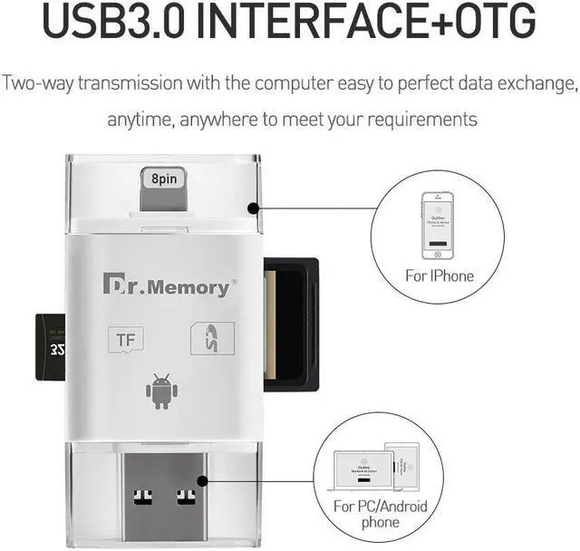 With dual interface both USB 2.0 & iPhone 8-PIN port & Android phone Can be used both for PC and Mobile