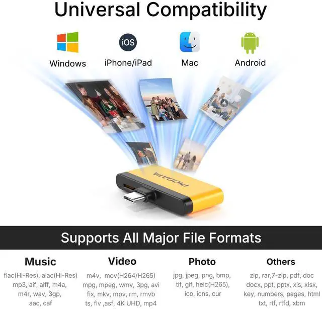 Enjoy smooth playback of 4K movies and Hi-Res audio directly from the drive without using device memory. The built-in MicroSD reader also makes it easy to access footage from drones, action cameras, dash cams, and more no laptop required.