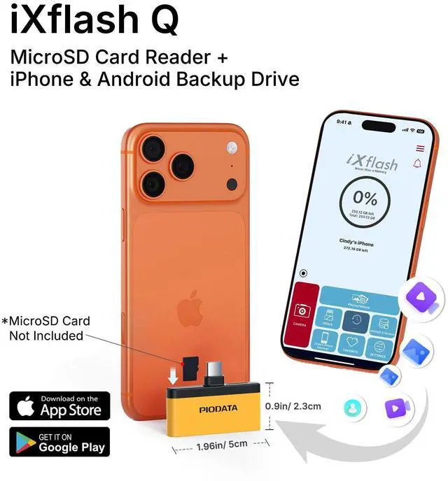 The free iXflash app for iOS and PioData app for Android make backing up photos, videos, and contacts fast and stress-free. For iPhone and iPad users, the iXflash Q allows photos and videos to be recorded directly to the drive, helping you capture more without constantly managing limited device storageideal for travel, events, and long shoots.