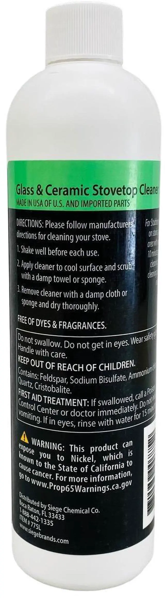 Brand new, 12 ounce industrial strength, glass & ceramic stove top cleaner, 775L. Specially formulated to clean the new ceramic and glass cook tops. Removes baked and burned on food without scratching.