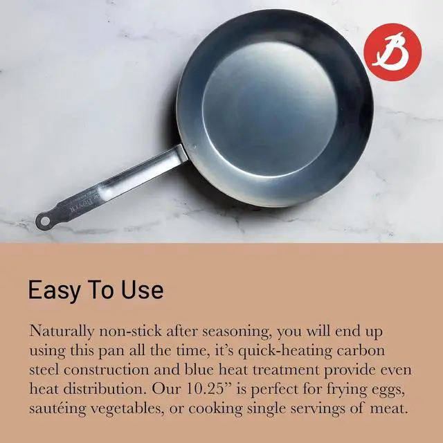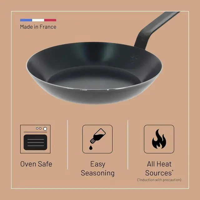 Our frying pans & skillets are perfect for searing steaks, sautéing vegetables, preparing pasta, omelettes and so much more. Made from carbon steel, our pans become naturally non-stick after seasoning, without any chemicals or synthetic coating, and get better the more you use them. Crafted with passion and precision since 1830, we design and manufacture premium cookware, bakeware and kitchen tools for professional chefs and home cooks.