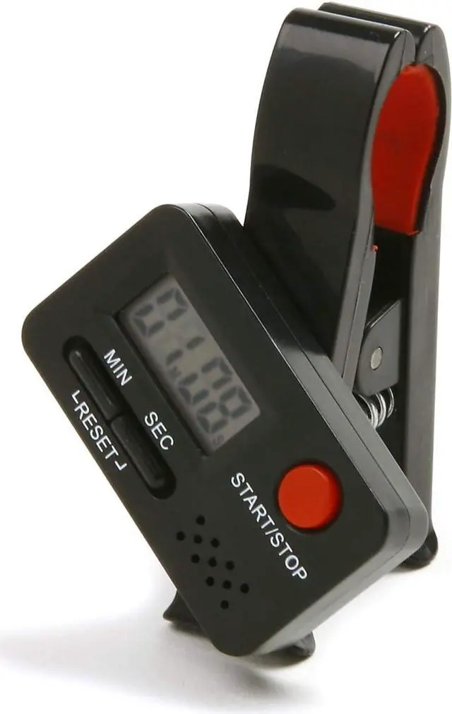 Measures 2.5" x 1" x 2" / 5.5cm x 2.5cm x 5cm Grips firmly to a cookware handle, apron and clothing for multi-tasking in the kitchen. Readout in minutes and seconds, maximum of 99 minutes with count up or down modes. Display rotates allowing timer to rest on counter top.