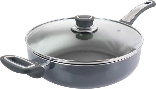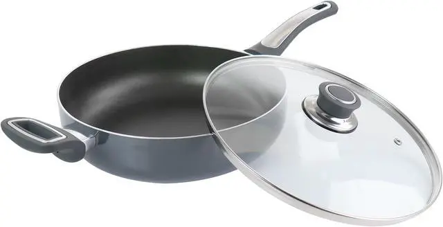 Cook up all your favorite meals with the Oster 3.5 Quart Aluminum Saute Pan with Lid. Cooking is so easy with the non stick coating. For low fat cooking and easy clean up. The ergonomic, bakelite handle stays very cool and easy for mobility while cooking. Made of strong durable forged aluminum that distributes heat evenly. Add this to your kitchen collection and enjoy cooking with Oster brand products.