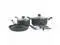 The Oster Legacy 8 Piece Aluminum Nonstick Cookware Set in Gray flares up and completes the kitchen. Features a clean glossy exterior with tasteful stainless steel accents. The nonstick interior provides easier food release for more comfortable cooking. Heat resistant bakelite handles and knobs prevent accidental burns during the cooking process. Includes nylon cooking utensils to complete the set. For long lasting quality and care, only wash the cookware by hand. Fry veggies, boil savory soups, or fire up pork chops for an unforgettable dinner.