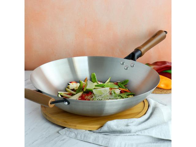 - Set: 14in Stainless Steel Wok