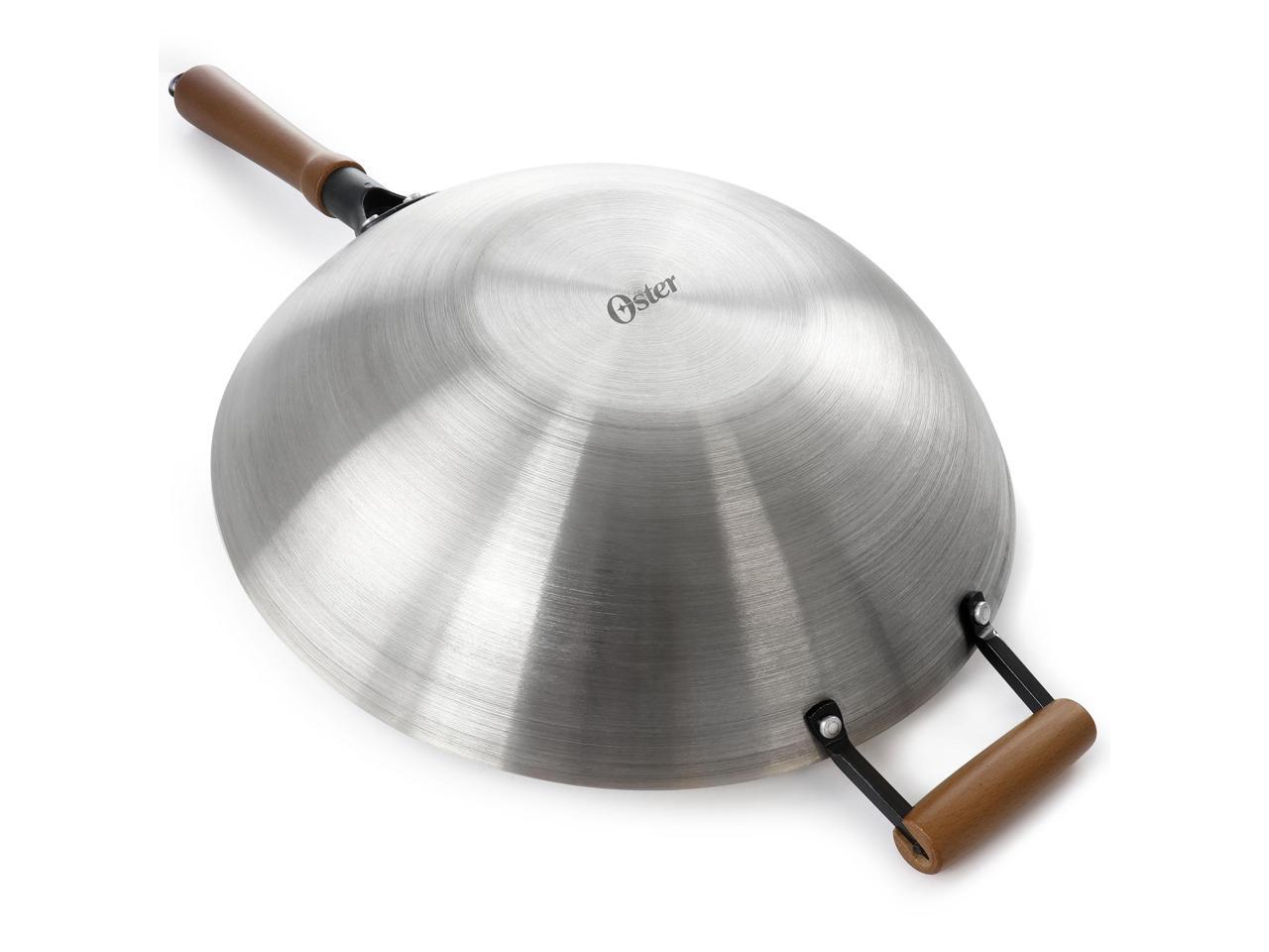 Oster Sangerfield 14in Stainless Steel Flat Bottom Wok with Wooden Handles
