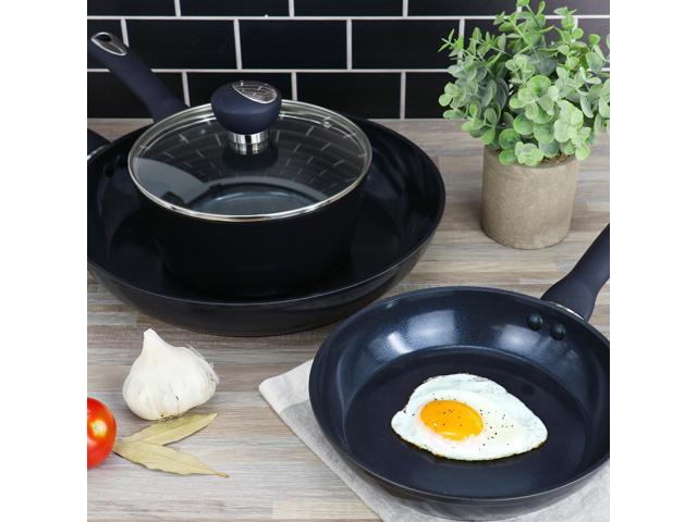 Oster Hawke 1.9 Quart Ceramic Nonstick Aluminum Saucepan with Lid in Dark Blue
