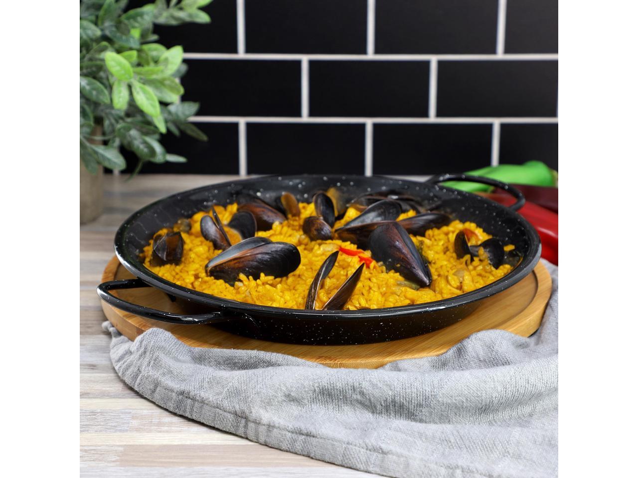 Oster Castillo 11 Inch Enameled Steel Paella Pan in Speckled Black