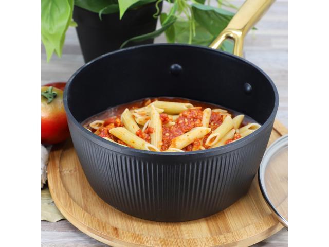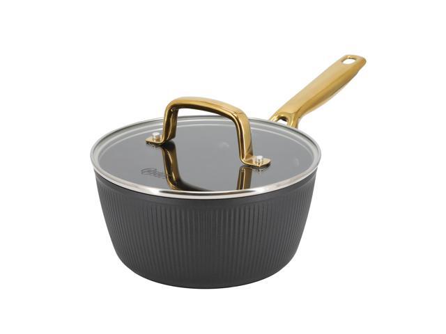 Oster Abbottsford 2.5 Quart Nonstick Aluminum Saucepan with Glass Lid in Black