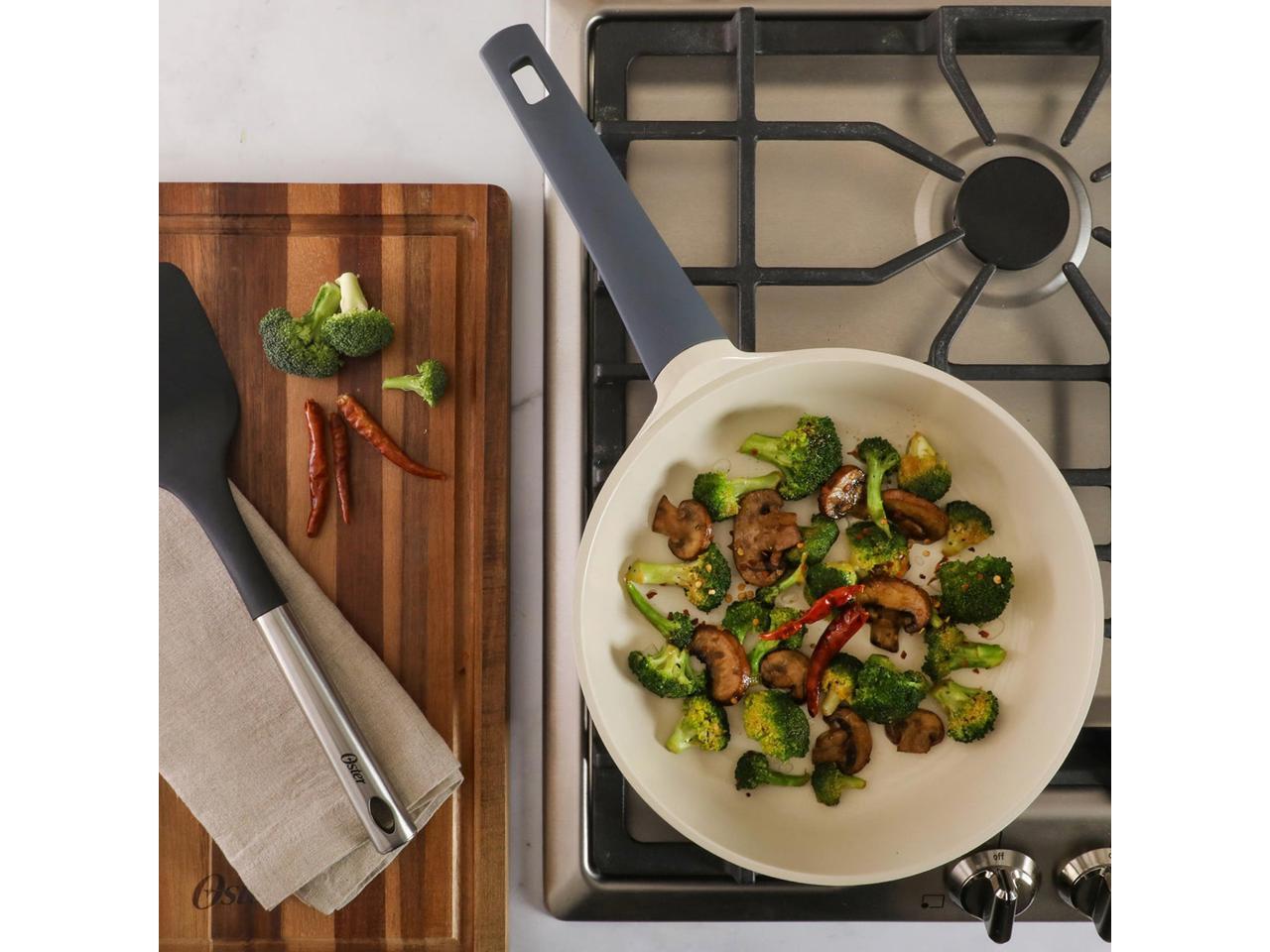 Oster Rooney 10 Inch Ceramic Nonstick Cast Aluminum Frying Pan in Grey