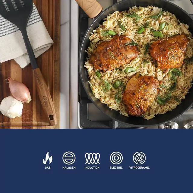 This pan is coated with a high-quality nonstick surface for easy food release and cleanup. It is compatible with various stovetops, including gas, halogen, induction, electric, and vitroceramic. Hand washing is recommended to maintain the nonstick coating and overall quality. Whether cooking omelets or searing vegetables, this pan is a reliable addition to any kitchen.