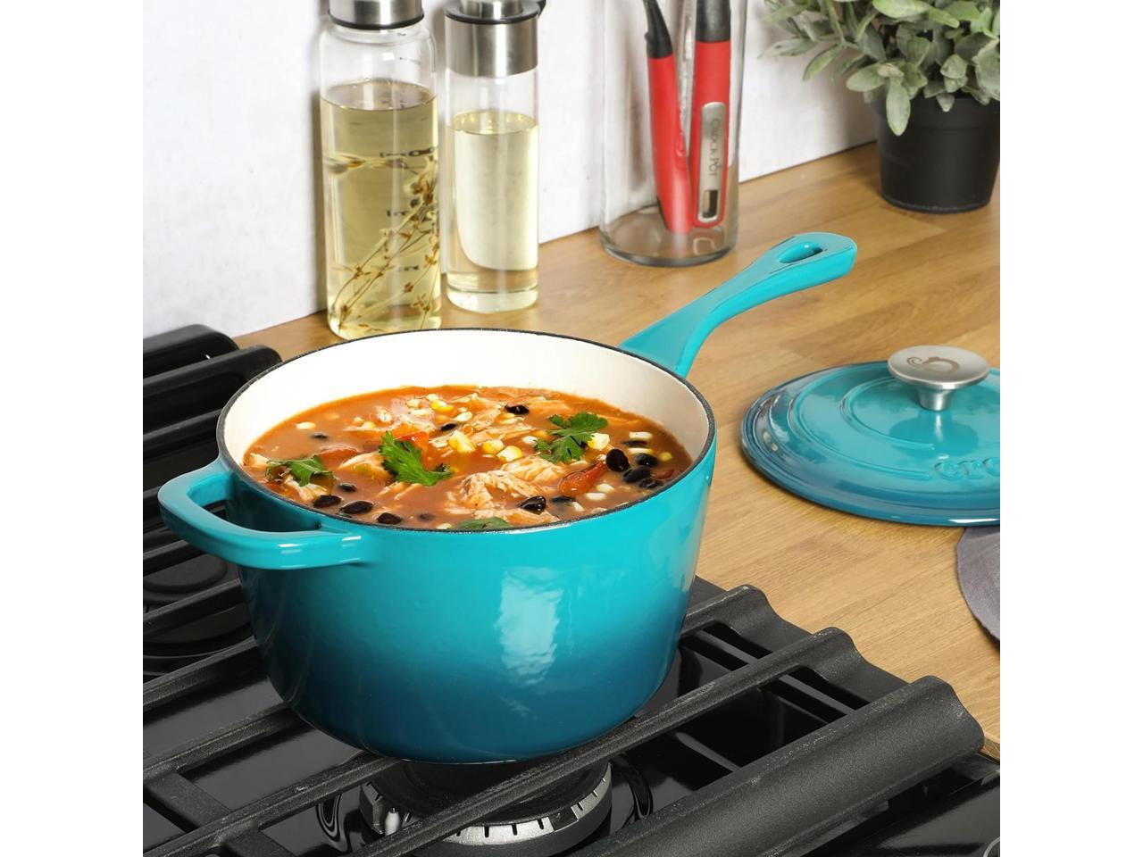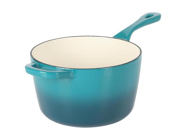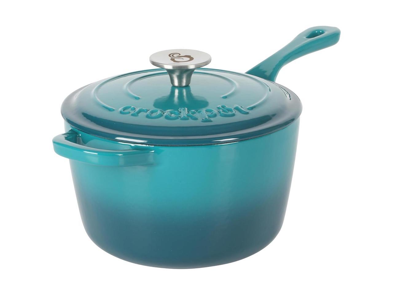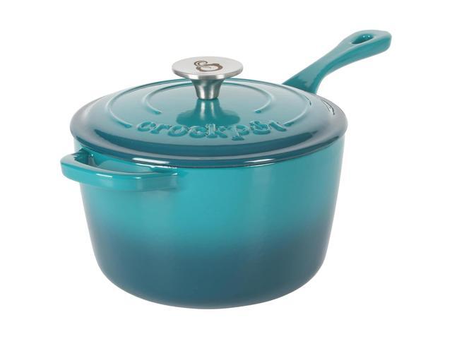Crock-Pot Artisan 3 Quart Enameled Cast Iron Saucepan with Lid in Teal and Silver