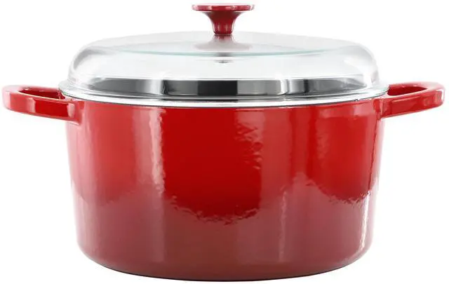 The Crock Pot Artisan 7 Quart Enameled Cast Iron Dutch Oven is the perfect blend of style and performance. Its durable enameled cast iron body ensures even heat distribution, while the borosilicate glass lid lets you watch your food as it cooks. Compatible with gas, electric, ceramic, and induction stovetops, it's also oven safe up to 500°F for ultimate versatility.