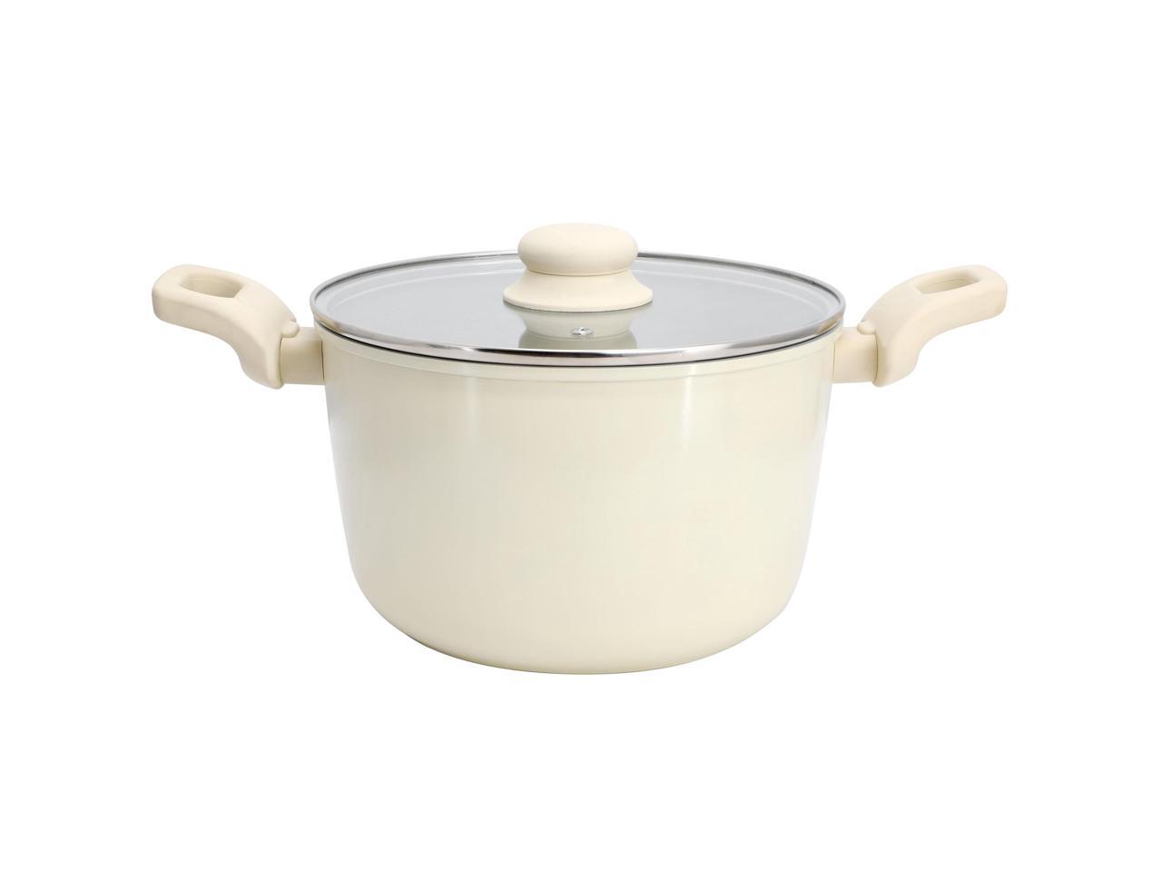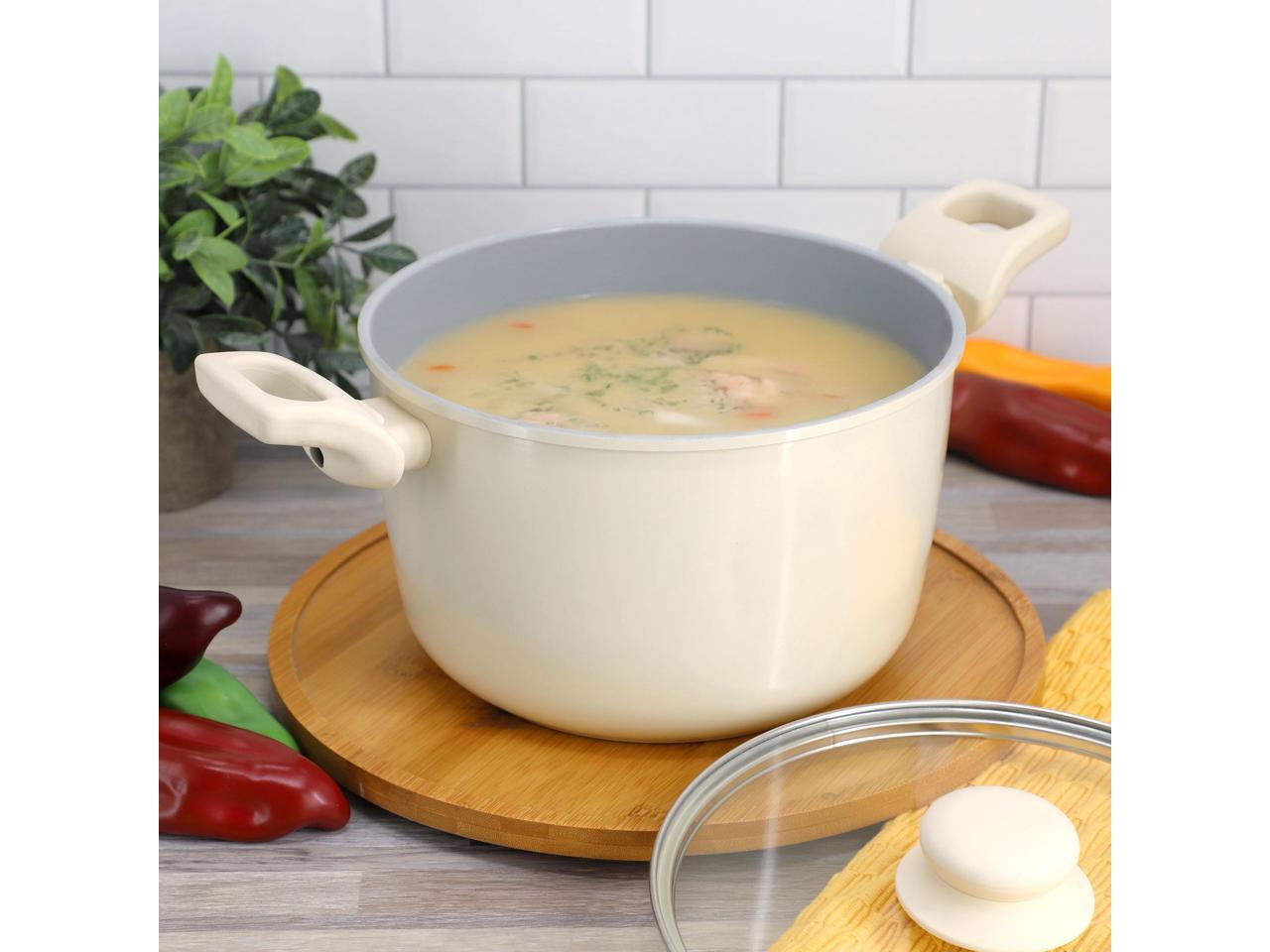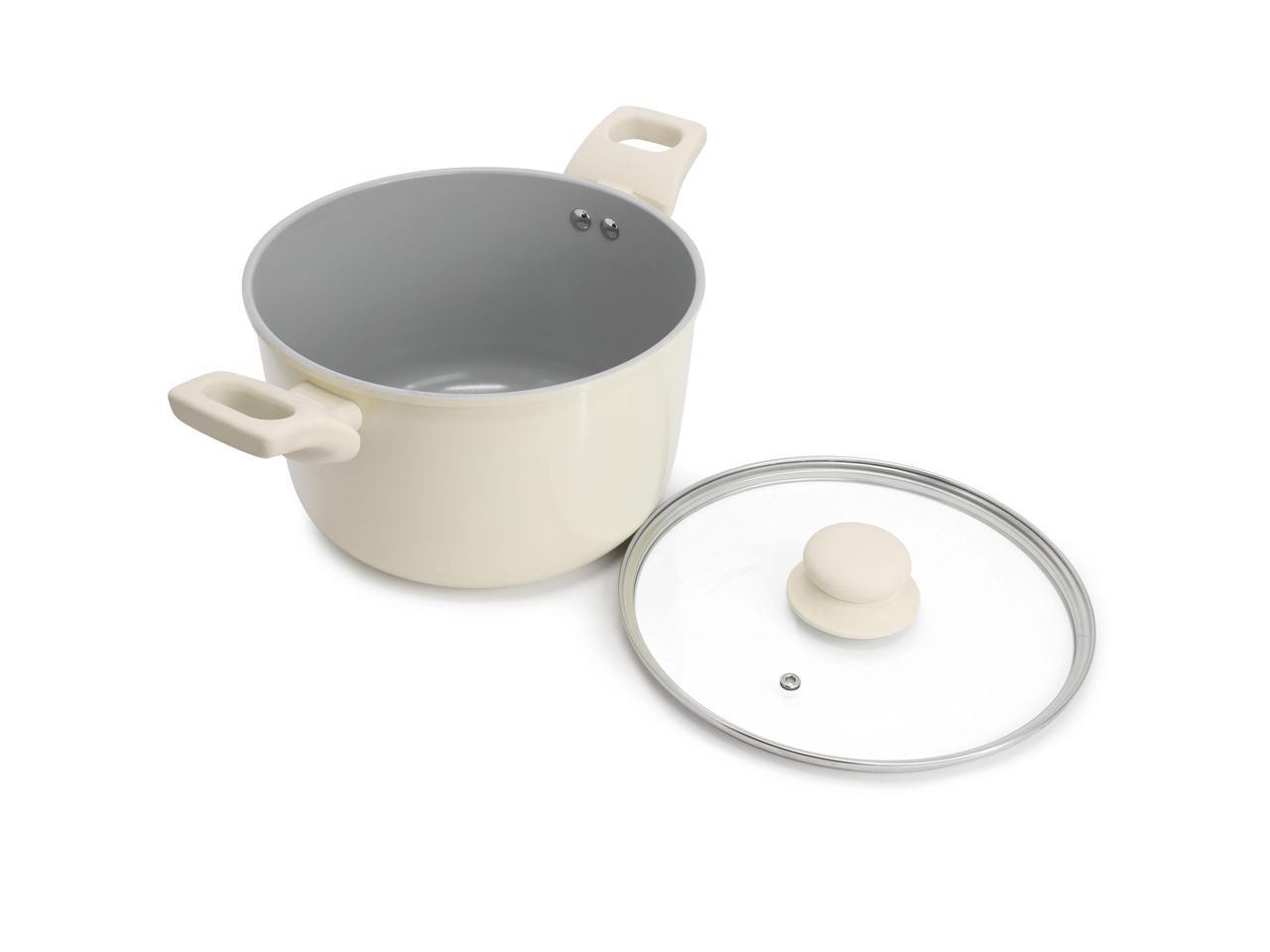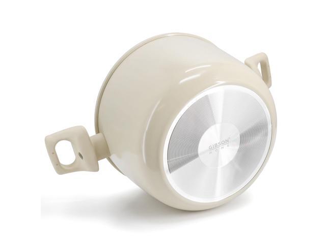 Gibson Home Barnsdall 5 Quart Ceramic Nonstick Aluminum Stock Pot with Lid in Cream