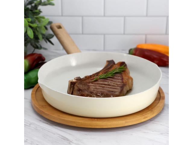 Gibson Home Marbleton Ceramic Nonstick Alumium 11 Inch Frying Pan in Cream