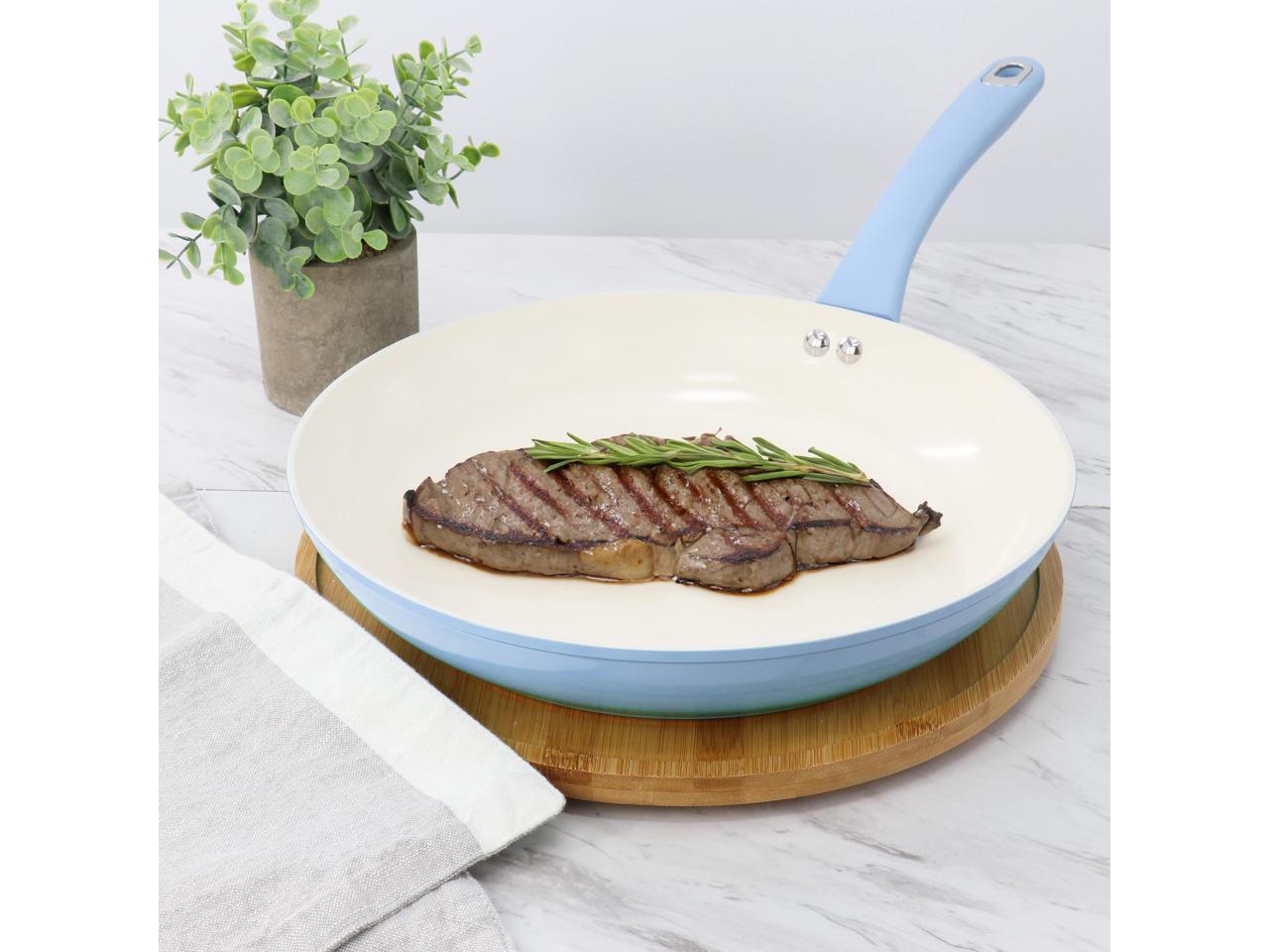 Martha Stewart Everyday Rexford 9.5 Inch Ceramic Nonstick Aluminum Frying Pan in Soft Blue