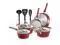 The NutriChef NCCW11RDL 11-Piece Ceramic Non-Stick Cookware Set brings style and functionality to any kitchen. Featuring an elegant gray diamond ceramic interior and a red heat-resistant lacquer exterior, this set is both durable and visually appealing.