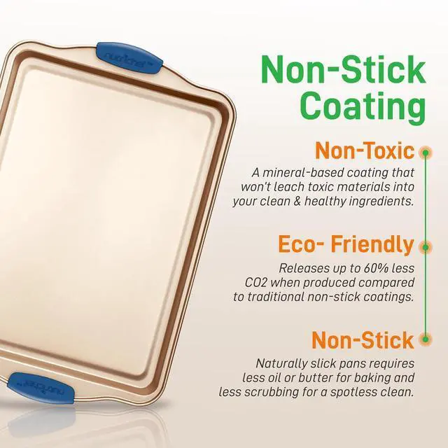 Made from high-quality carbon steel, these pans distribute heat evenly for consistent baking results. The ergonomic blue silicone handles provide a comfortable, heat-resistant grip, making it safe and easy to handle.