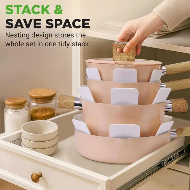 NutriChef Kitchenware Pots and Pans - 14-piece Non-Stick Ceramic Induction Cookware Set with Glass Lid and Heat Resistance Lacquer with Handle (Pink)