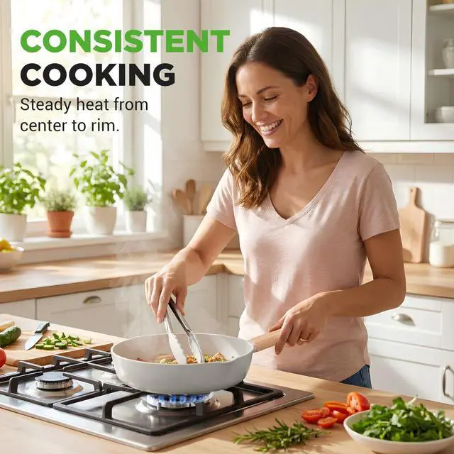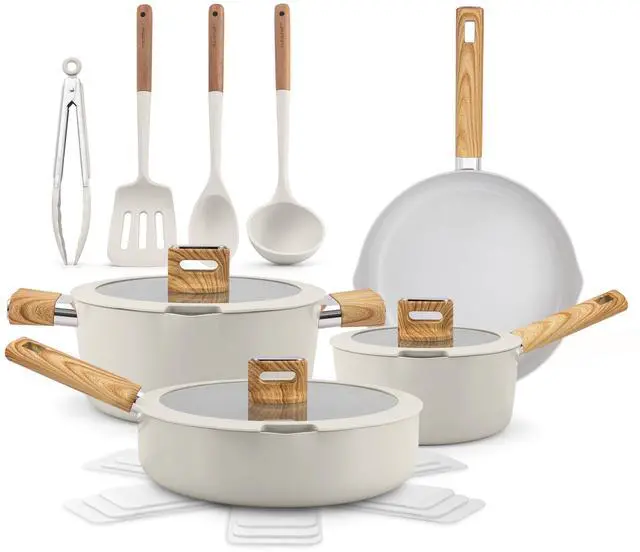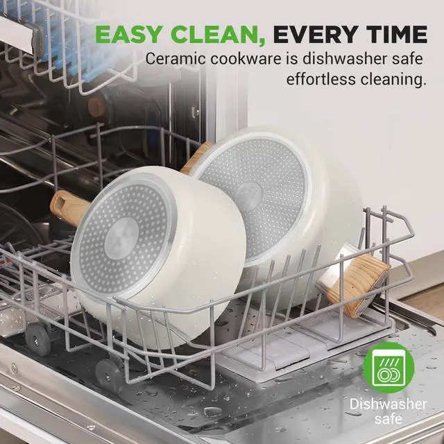 The NutriChef NCCWST14WDBG. 5 Ceramic Cookware Set in beige offers a timeless and elegant design, making it a perfect addition to any kitchen. This 14-piece set features nonstick ceramic cookware with glass lids, heat-resistant handles, and includes essential cooking utensils for added convenience. Compatible with all cooktops, the durable construction ensures even heat distribution and easy cooking. The beige finish gives the cookware a subtle, classic look, blending seamlessly with any kitchen décor. Whether youre cooking a quick weeknight dinner or hosting a dinner party, this set provides everything you need to cook in style and with ease.