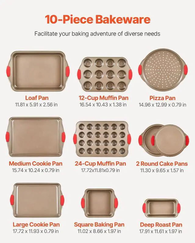 Product Name: 10-Piece Carbon Steel Bakeware Set, Gold, Non-Electric