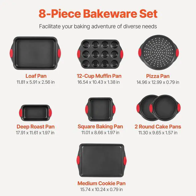Product Name: 8-Piece Carbon Steel Bakeware Set, Black, Non-Electric
