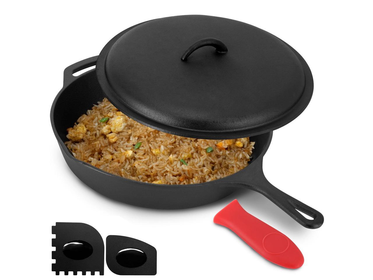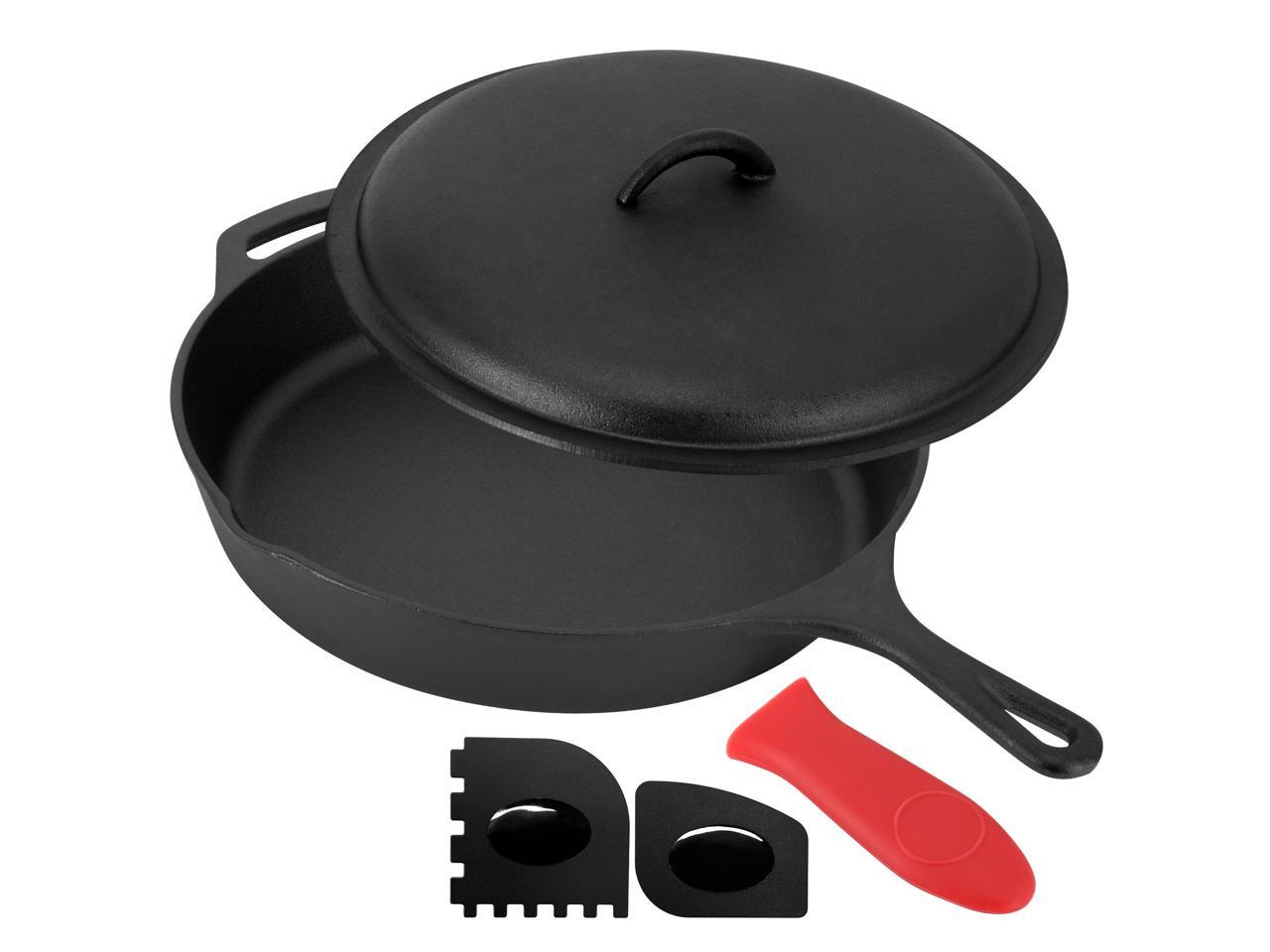 MegaChef 12 Inch Pre-Seasoned Cast Iron Skillet with Cast Iron Lid