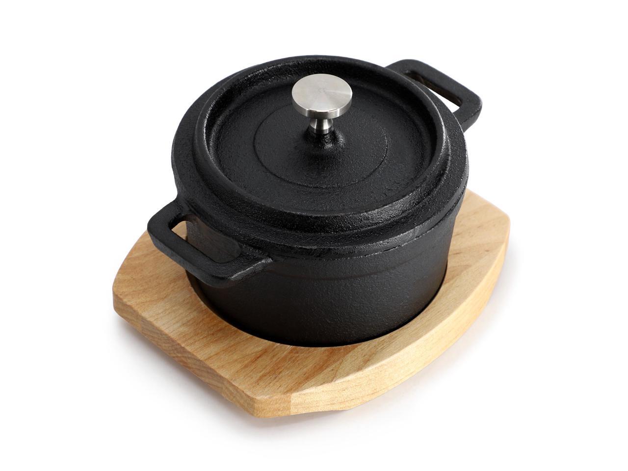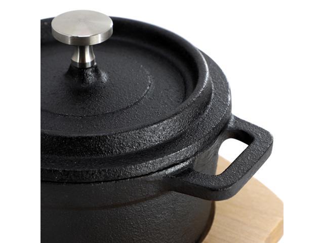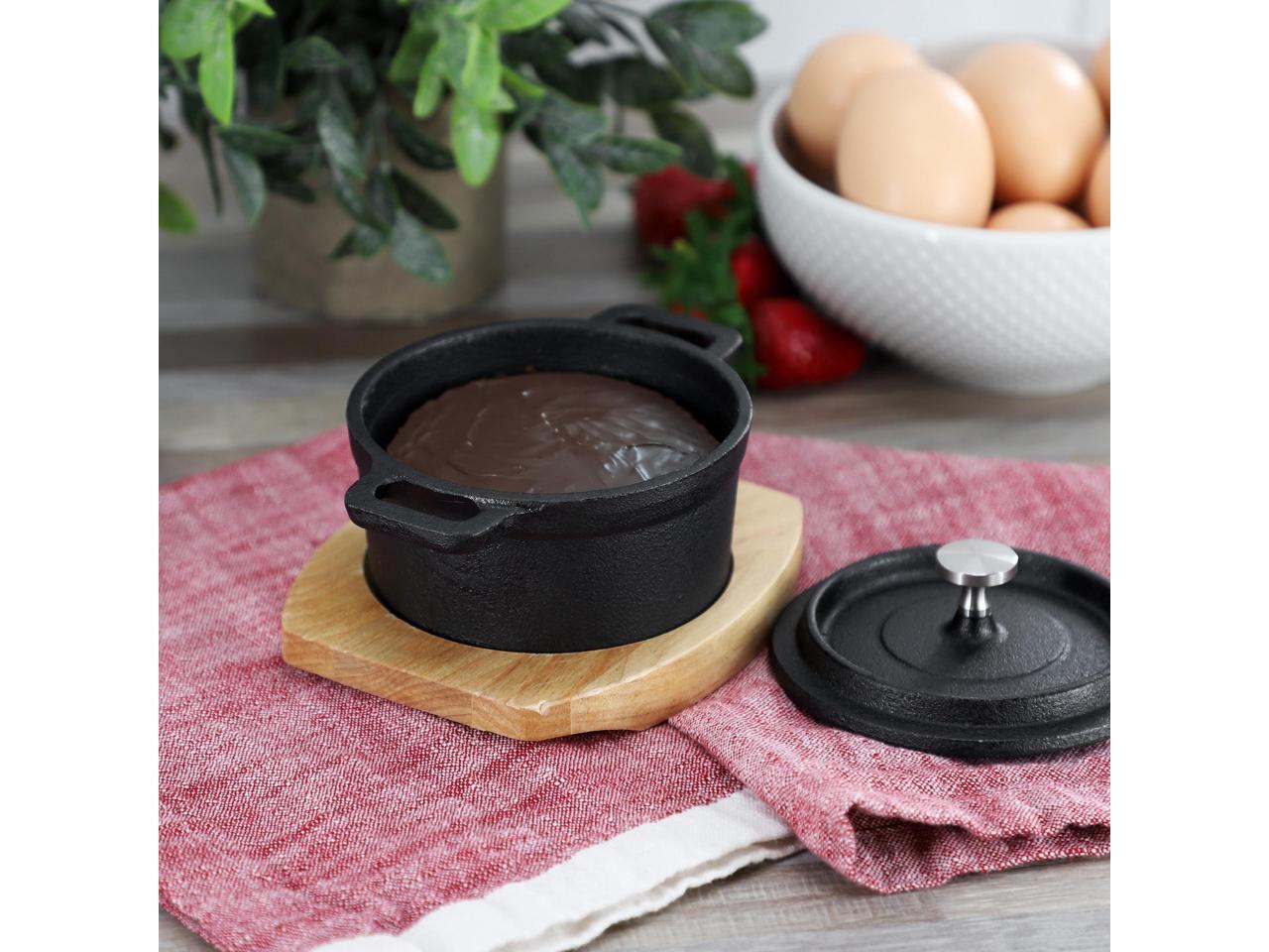 MegaChef Cast Iron 8 Ounce Mini Dutch Oven with Wood Tray