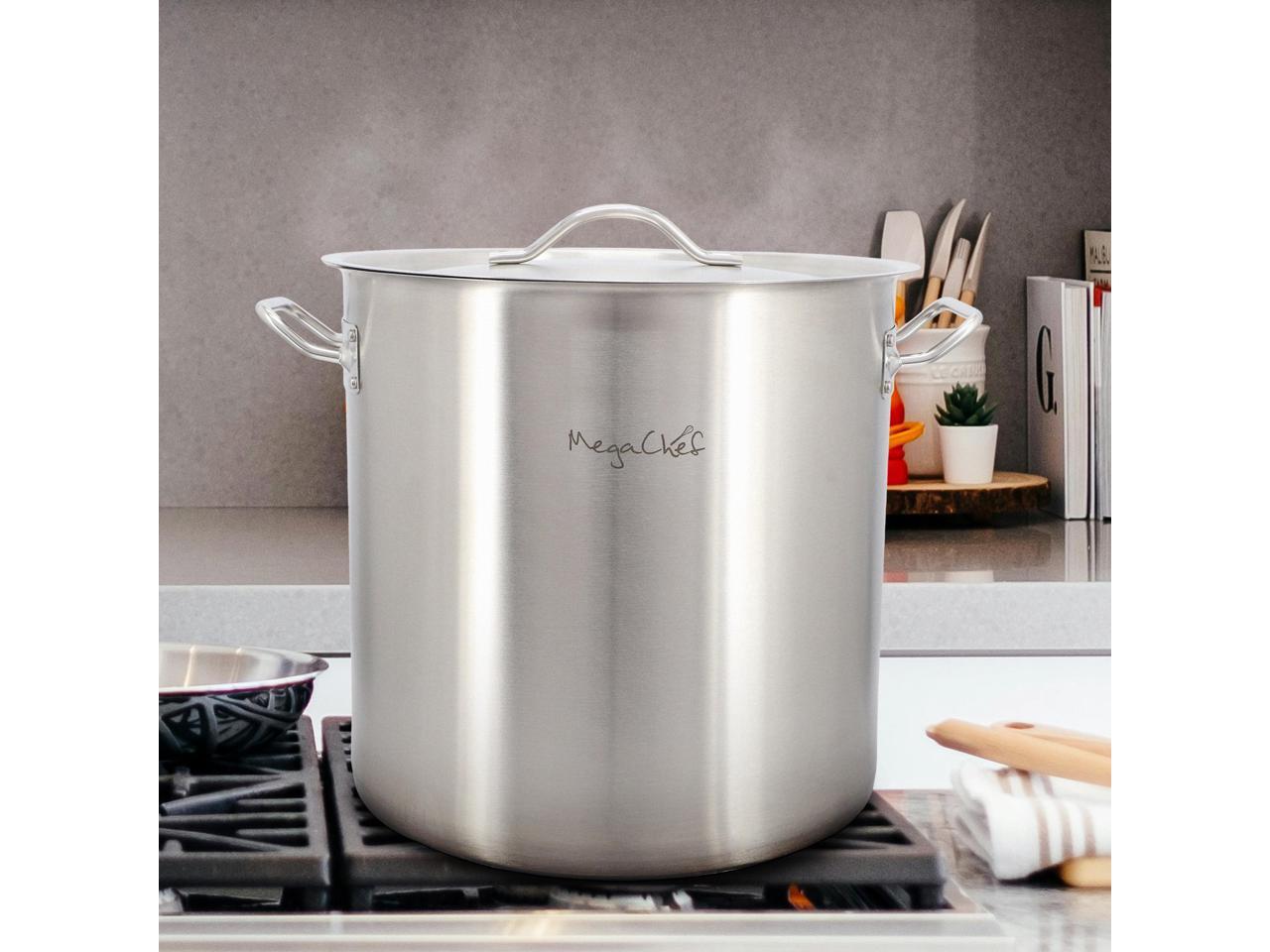 MegaChef Professional Kitchen 52.8 Quart Round Stainless Steel Stock Pot with Lid