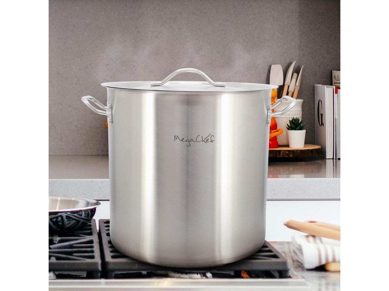 MegaChef Professional Kitchen 38.5 Quart Round Stainless Steel Stock Pot with Lid