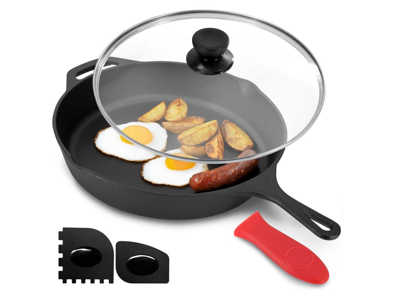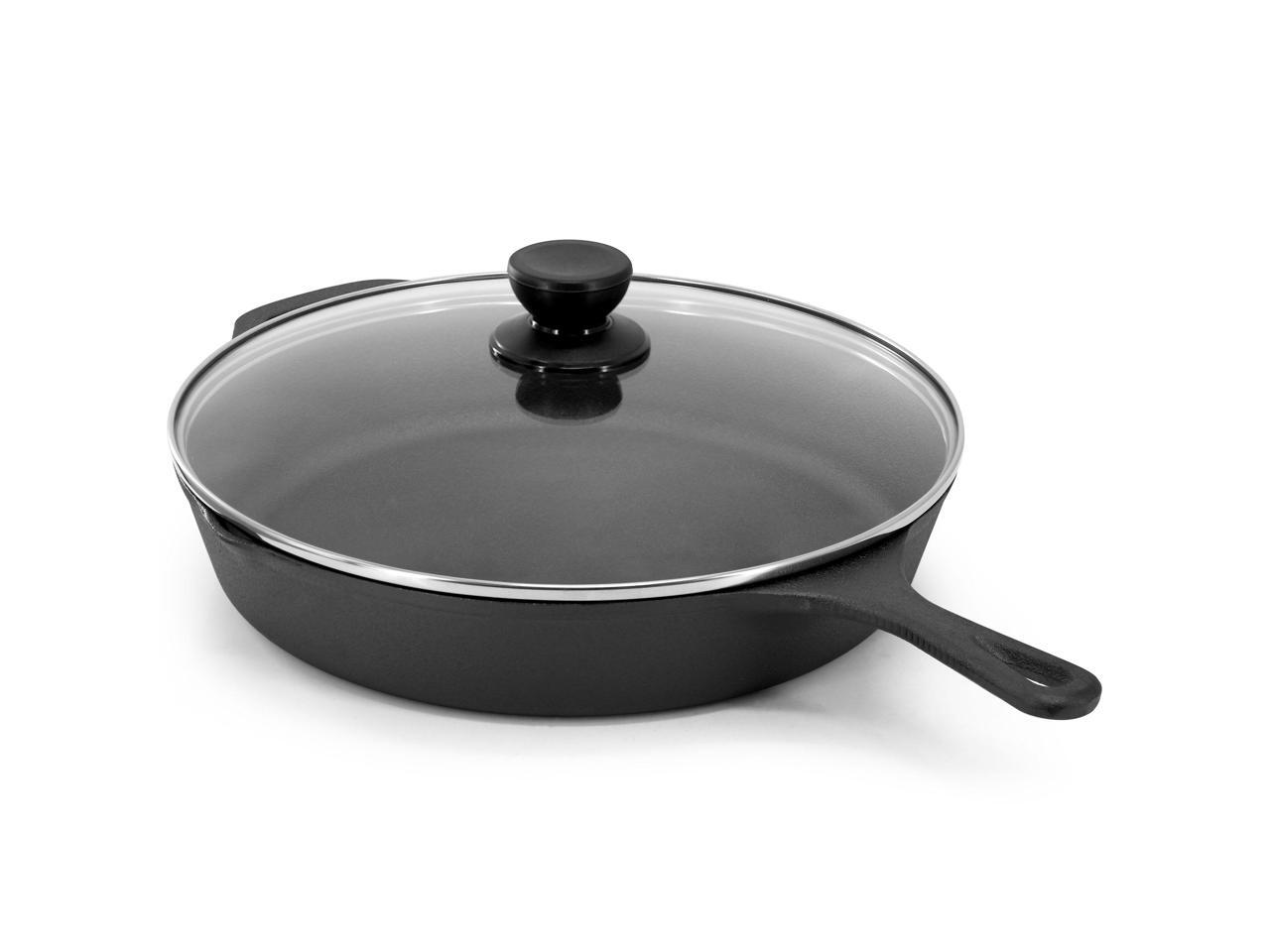 MegaChef 12 Inch Pre-Seasoned Cast Iron Skillet with Tempered Glass Lid