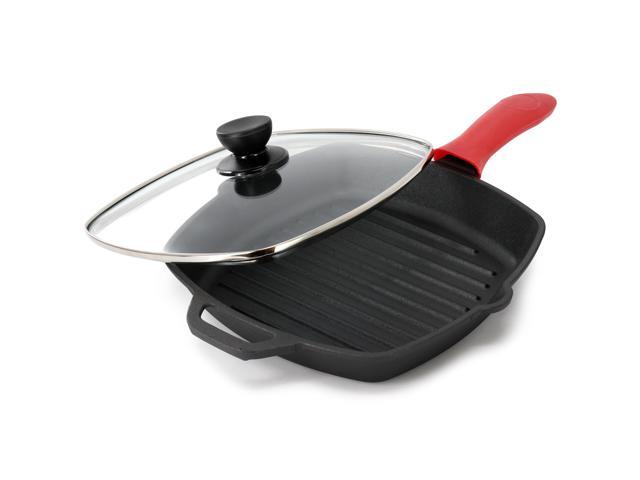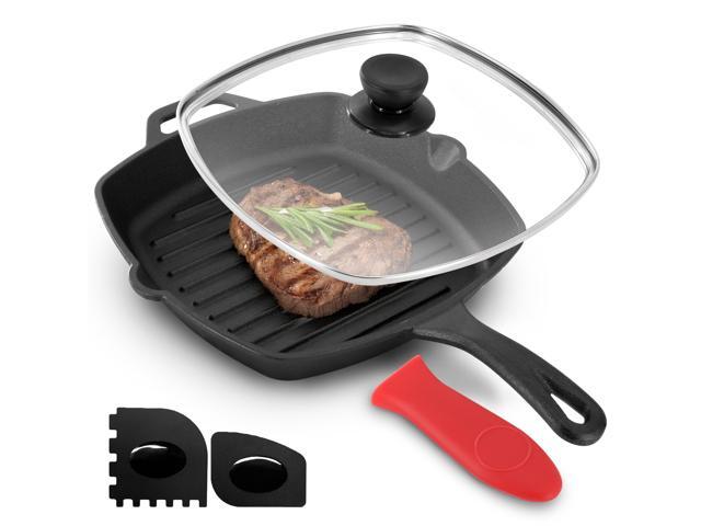 MegaChef 10.4 Inch Pre-Seasoned Cast Iron Griddle with Tempered Glass Lid