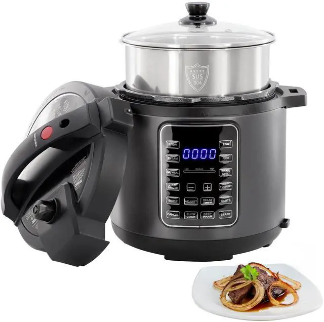 This product is perfect for anyone searching for a stainless steel multi-cooker, 6-quart electric pressure cooker, or programmable all-in-one cooker with smart features like Delay Start and Keep Warm.