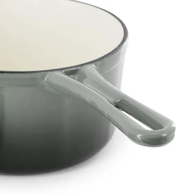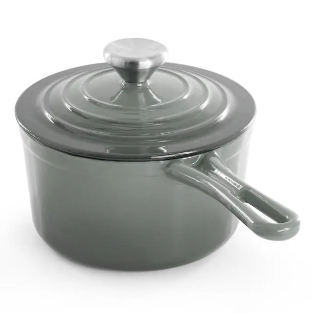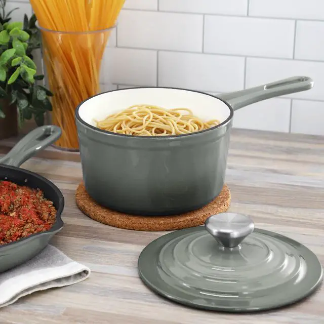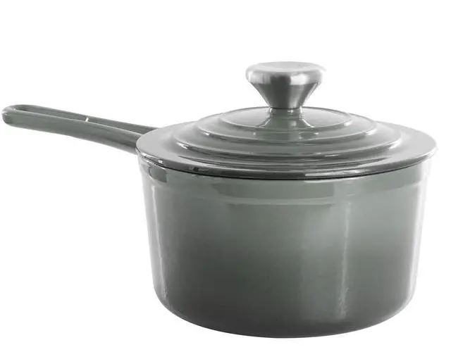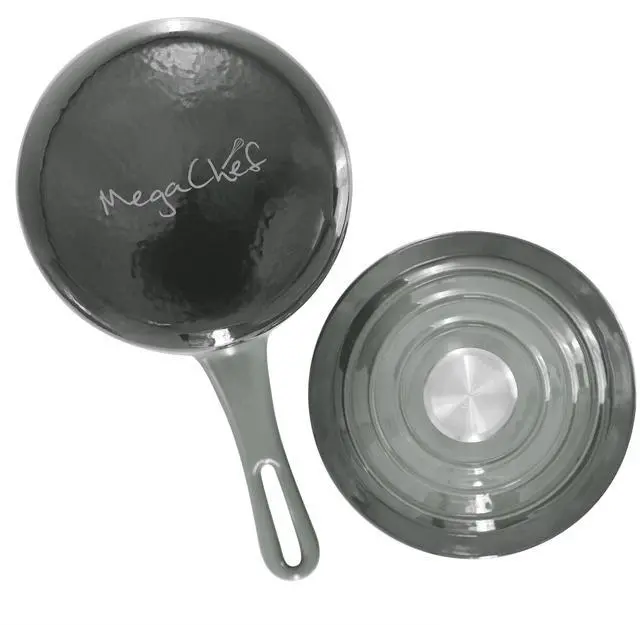 Finished in an eye-catching gradient gray enameled exterior, this 2-quart cast iron saucepan is both stylish and functional. It is oven safe up to 450°F and dishwasher safe for added convenience, seamlessly transitioning from stovetop to oven to table. Durable, versatile, and beautifully designed, the MegaChef enameled cast iron saucepan delivers reliable performance for everyday meals and special occasions alike.