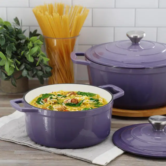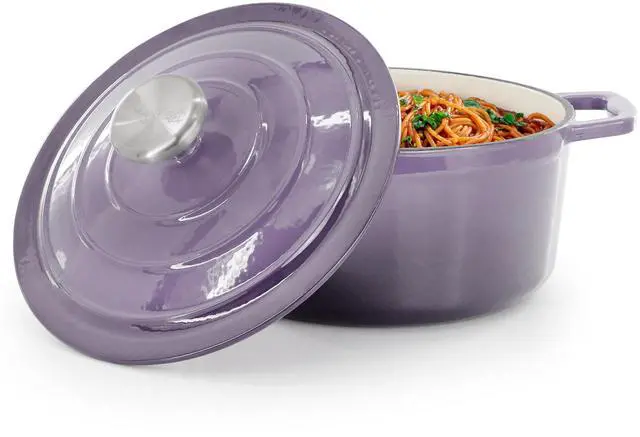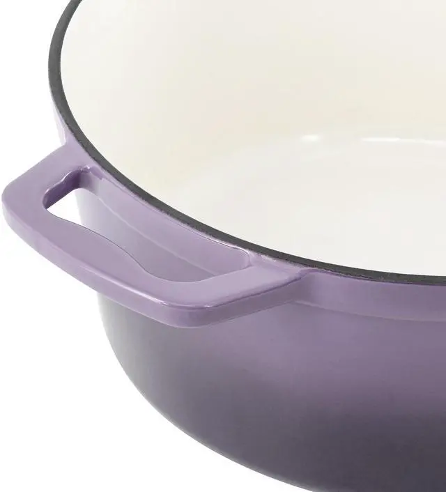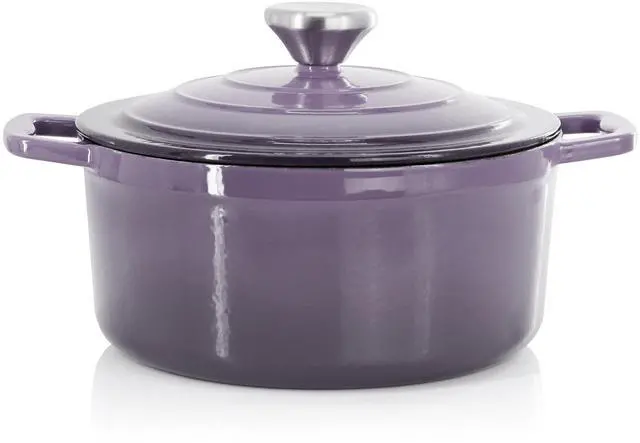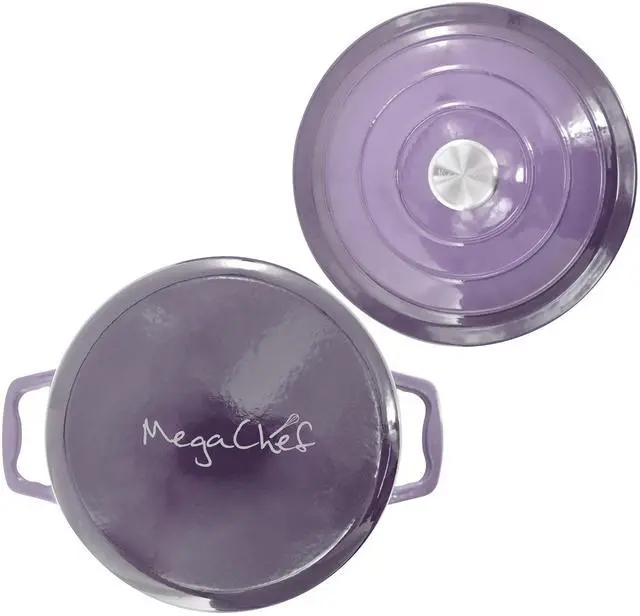 Perfect for preparing soups, stews, chili, pot roast, and casseroles, this round enameled cast iron pot transitions seamlessly from stovetop to oven to table. Finished in an eye-catching gradient purple color, the MegaChef casserole dish combines performance, durability, and style-ideal for everyday meals and special occasions alike.