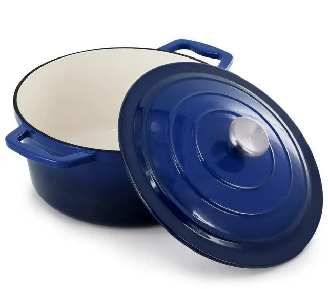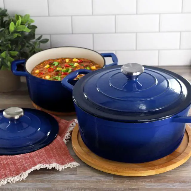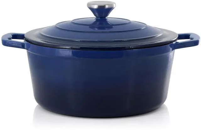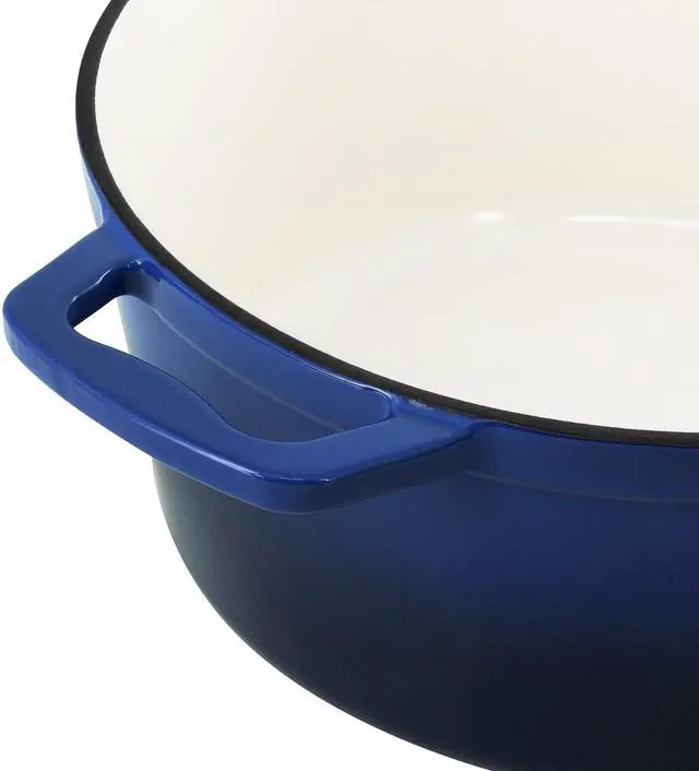 Perfect for preparing soups, stews, chili, pot roast, and casseroles, this round enameled cast iron pot transitions seamlessly from stovetop to oven to table. Finished in an eye-catching gradient blue color, the MegaChef casserole dish combines performance, durability, and style-ideal for everyday meals and special occasions alike.