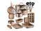 - Includes (6) bakeware set, (3) nylon utensils, (1) silicone drainer, (3) open fry pans, 1.5-quart saucepot with lid, 2.5-quart sauce pot with lid, 5-quart stew pot with lid, grill pan, soup ladle, pasta fork, spatula