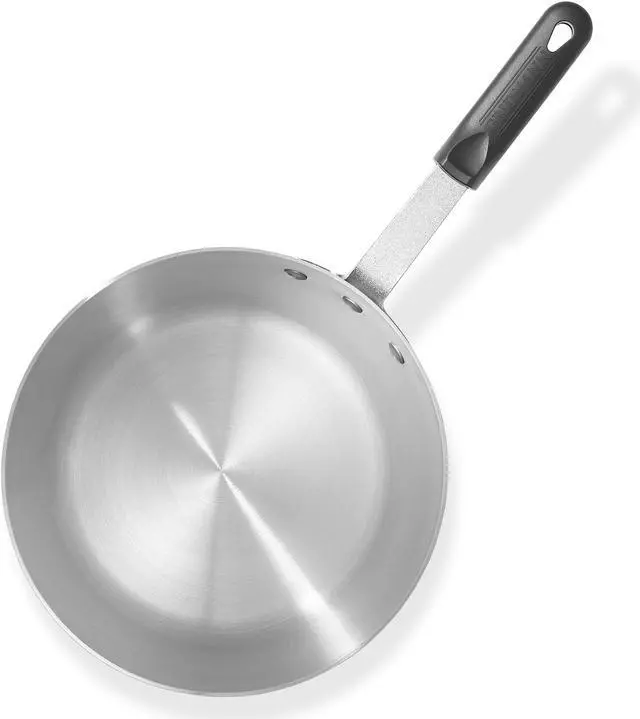 Maintaining these aluminum tapered sauce pans is straightforward, thanks to their easy-to-clean design. Although they are hand wash only, their smooth surface minimizes food residue, making cleanup quick and efficient. Hand washing helps preserve the aluminum's finish, durability, and the integrity of the riveted handles, ensuring the pans remain in excellent condition over time.