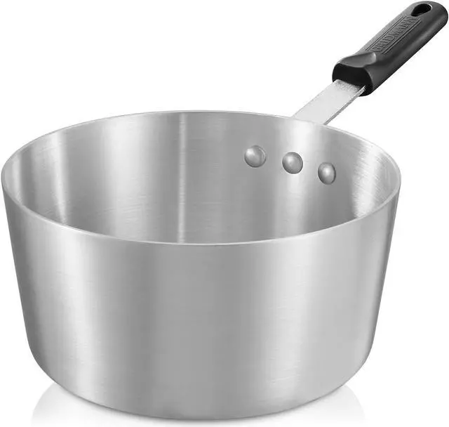 Aluminum tapered sauce pans are indispensable tools in commercial kitchens, prized for their excellent heat conductivity and even cooking. The aluminum construction allows for rapid heating, essential in fast-paced restaurant environments where efficiency is key. The tapered design promotes efficient stirring and prevents ingredients from burning, making these pans perfect for sauces, soups, and reductions. The non-reactive aluminum surface ensures they do not transfer unwanted flavors to food, preserving the purity of delicate sauces and soups. Additionally, their compatibility with various cooking surfaces adds to their versatility, making them essential in any professional kitchen.