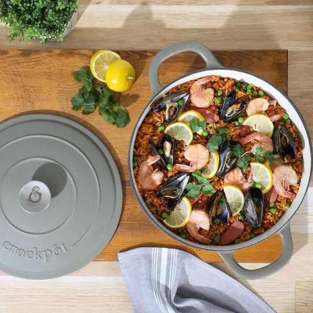 Take full advantage of the Crockpot Artisan 7 Quart Enameled Cast Iron Dutch Oven and its endless possibilities. The cookware features a bright colored matte enameled finish, bringing style in to the kitchen. The self basting lid adds more flavor and moisture to any home recipes. It's stovetop and oven safe for cooking a larger array of dishes. Surprise family and friends with delicious stews, savory curries, baked sweets and more!