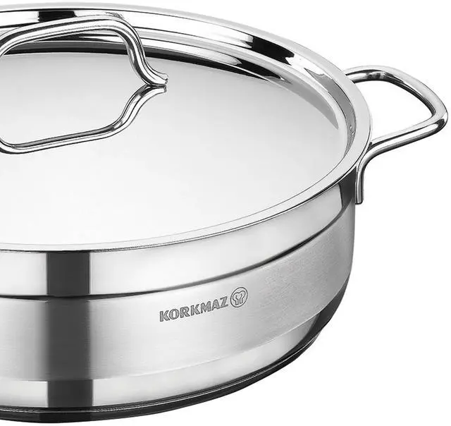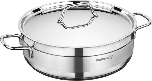The Korkmaz Alfa Casserole Dish is a reliable and high-quality cookware that is perfect for preparing a variety of dishes. Its durable construction, non-stick coating, and comfortable handle make it a practical and convenient choice for any home cook. The Solar Base system transfers the heat evenly for efficient cooking and delicious results. The sturdy stainless steel construction with extra thick handles will last for years of use and the stylish mirror polish looks great in any kitchen.